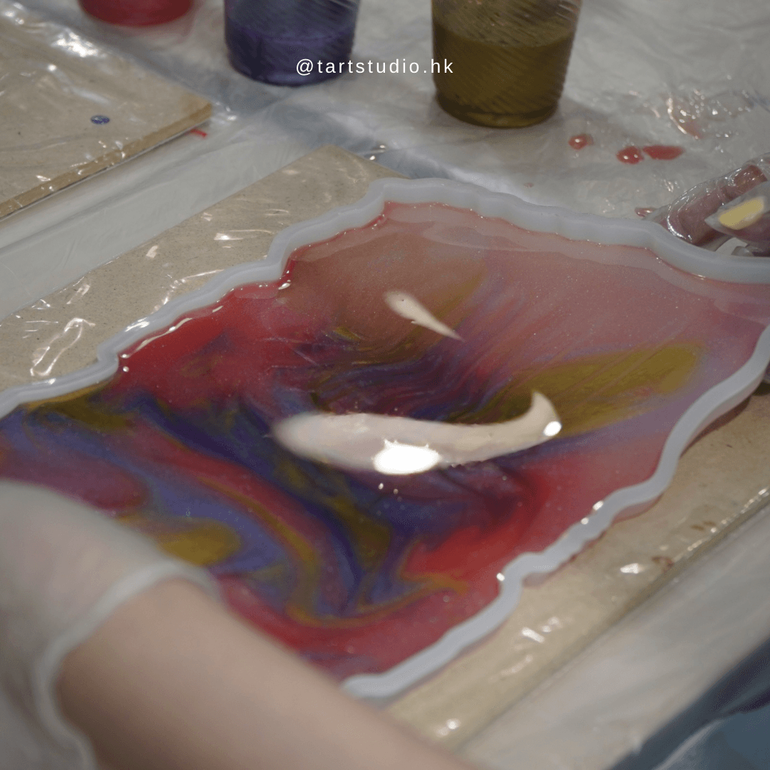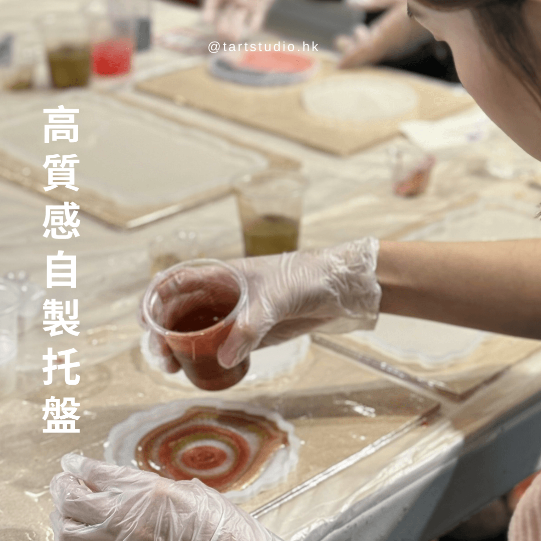工作坊簡介|一場創意與工藝的奇妙結合。製作具有高質感的水晶西式托盤,利用特殊的樹脂膠技術打造出仿西式雲石紋理,為您的空間增添優雅與獨特性。可自由添加天然水晶碎石、閃粉等裝飾,讓每一件作品都獨一無二!